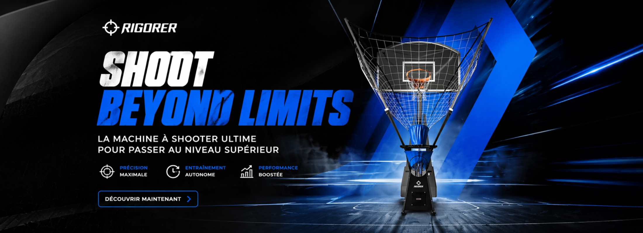 Shooting machine Rigorer : l’entraînement basket nouvelle générationLa shooting machine basketball Rigorer est un équipement d’entraînement intelligent dédié aux basketteurs de tous niveaux. Elle combine lancer de balle lobé réaliste, préservation des ballons et suivi précis des performances en temps réel. Grâce à ses 13 zones de tir, ses réglages personnalisables et son application mobile connectée en Bluetooth, elle permet des séances mesurables, efficaces et adaptées à chaque joueur. Robuste, mobile et sécurisée, la Rigorer transforme l’entraînement en un outil structuré, data-driven et orienté performance durable.