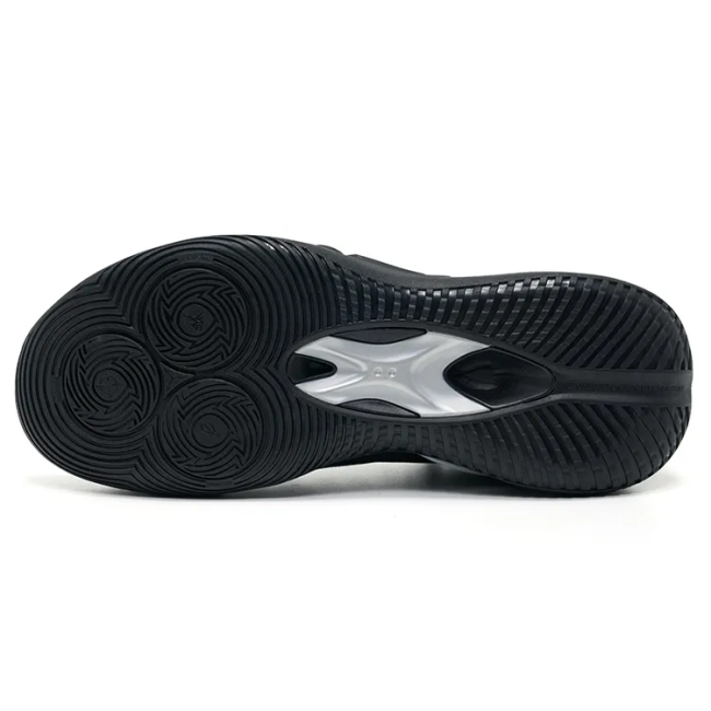 - Motifs en tourbillon sous la semelle, conçus pour améliorer la traction et les performances antidérapantes.